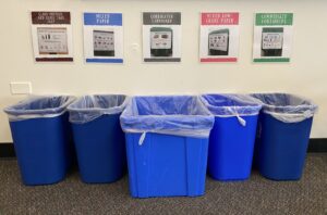 - Recycling Center (we volunteer and help patrons sort their recycling)- Before students can become volunteers in the community, we make sure students have the basics of recycling down and practice sorting recycling in the classroom. We have bins set up like this to practice!