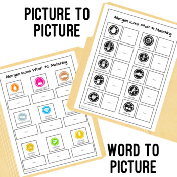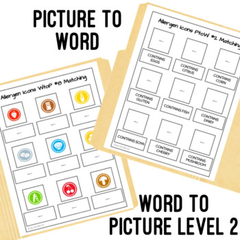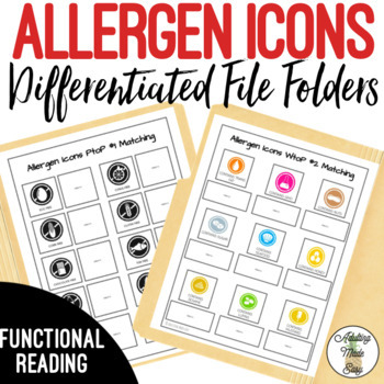 Functional reading of allergy symbols. Differentiated 4 different ways, helping students to recognize common allergy icons commonly found on food packages for safety.