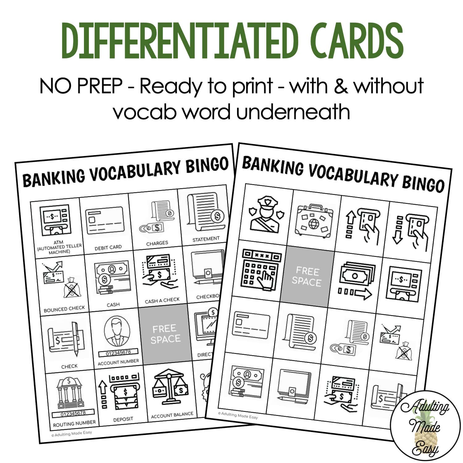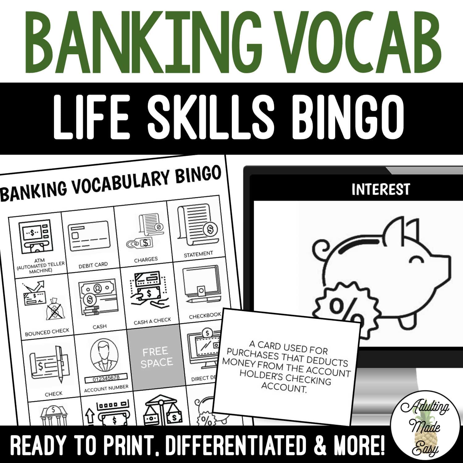 A fun and engaging way to practice functional reading of common life skills bank finance vocabulary, the perfect review activity for special education, autism or English language learner classroom. Age-appropriate visual resource for older students learning pre-vocational skills.