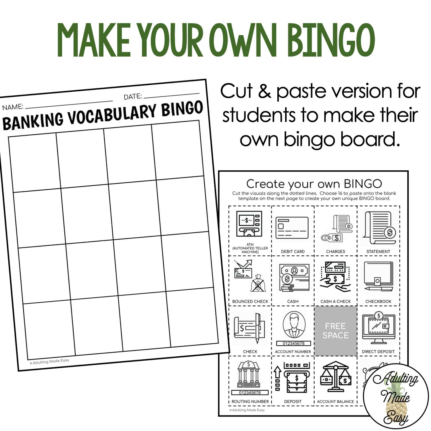 Banking Vocabulary BINGO Game