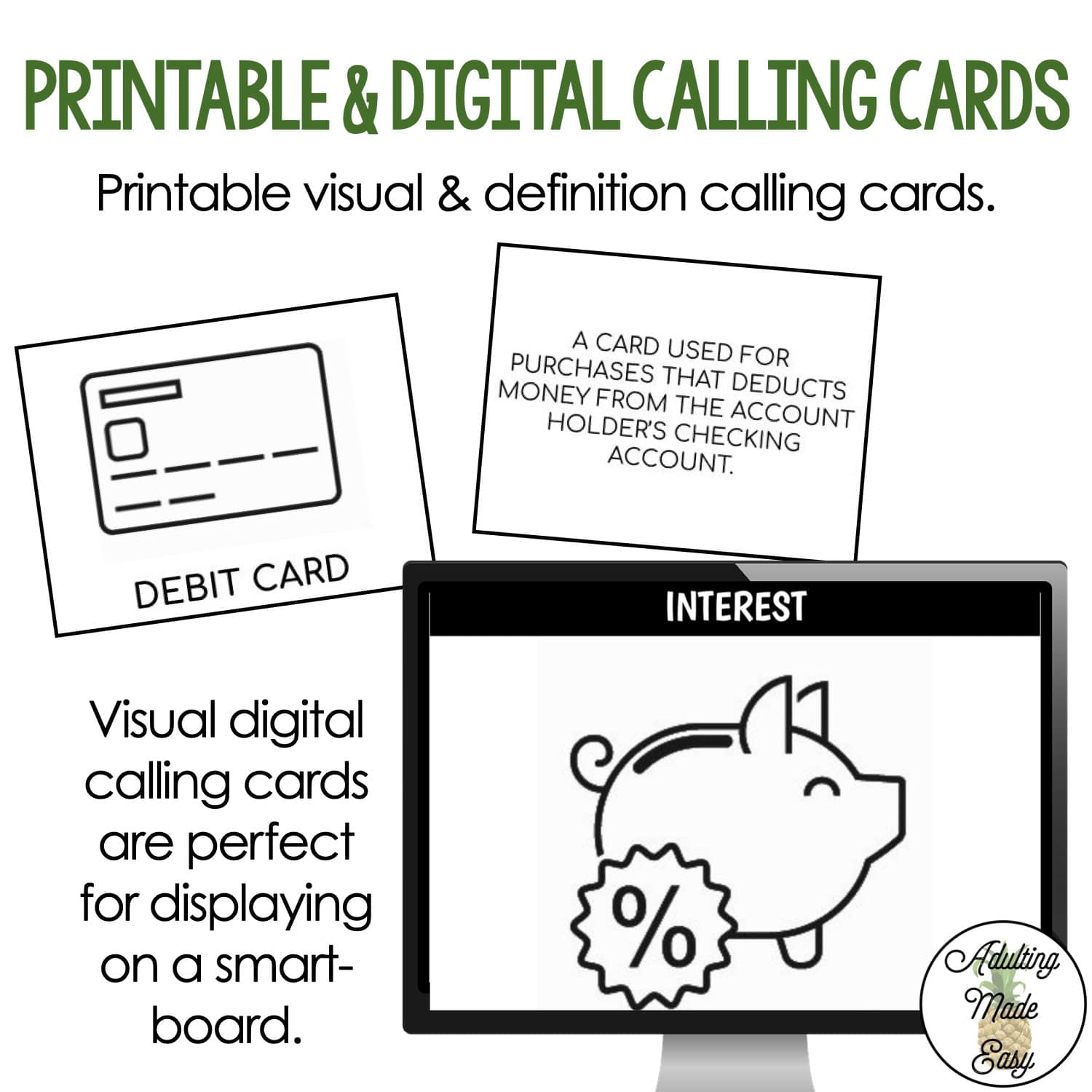 • Large visual calling/answer cards (great for students that need to match)