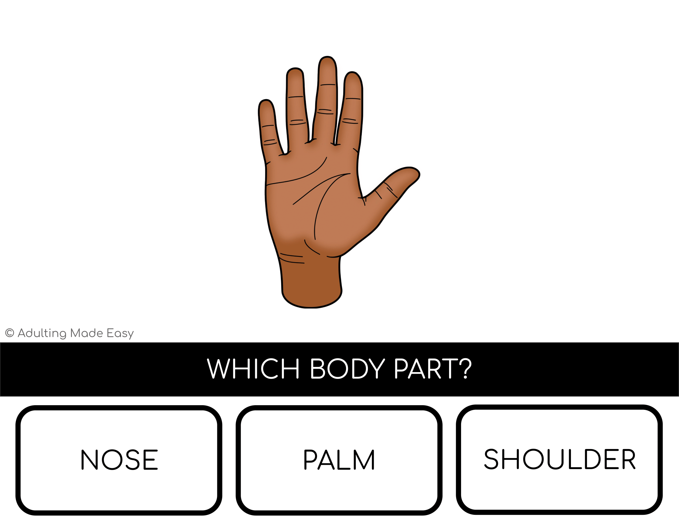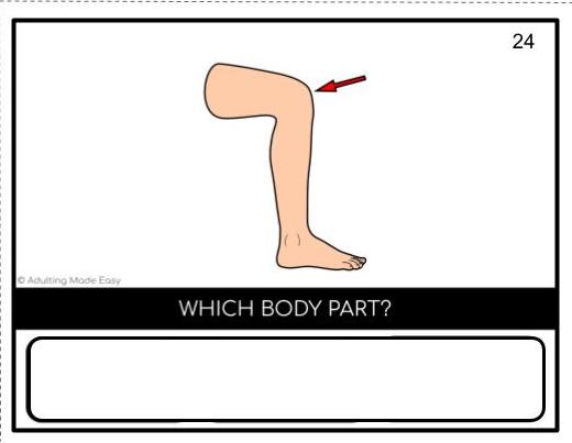 An essential life skill is to identify body parts. This skill will help individuals communicate if something hurts, clothing to buy and so on. Student will choose the correct word after viewing the visual. Great activity for special education or English language learners.