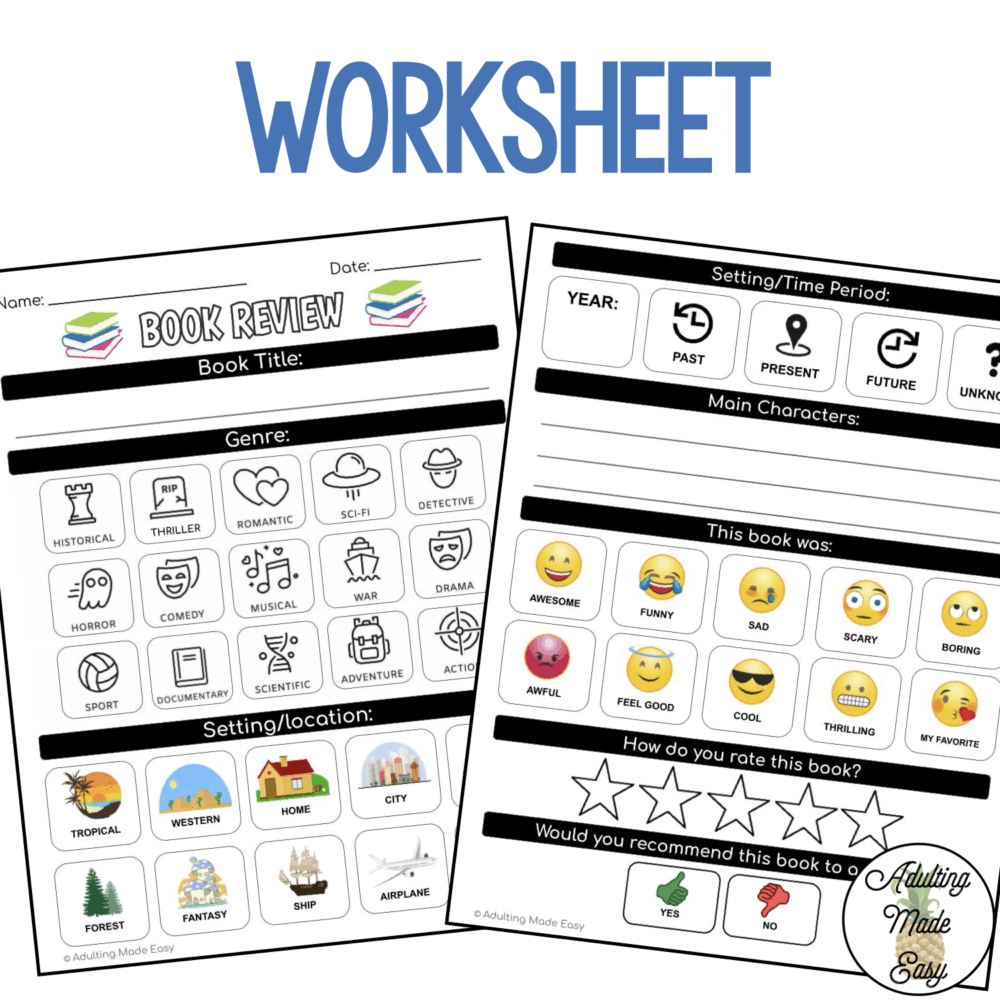 Visual symbol supported Worksheet to reflect and review a Book or Story.
