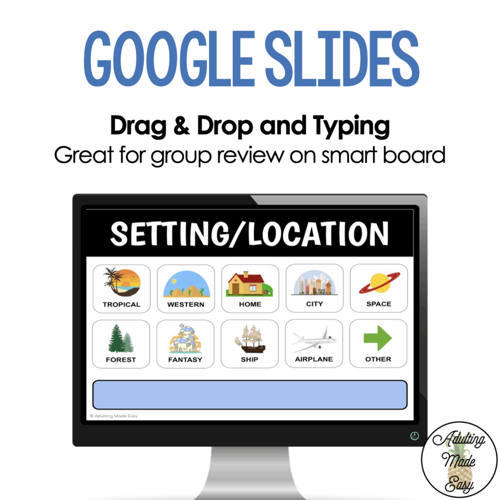 • Google Slides™ drag & drop and typing slides (you will be given a link to make a copy to your Google Drive). From there you can edit, add, delete slides.