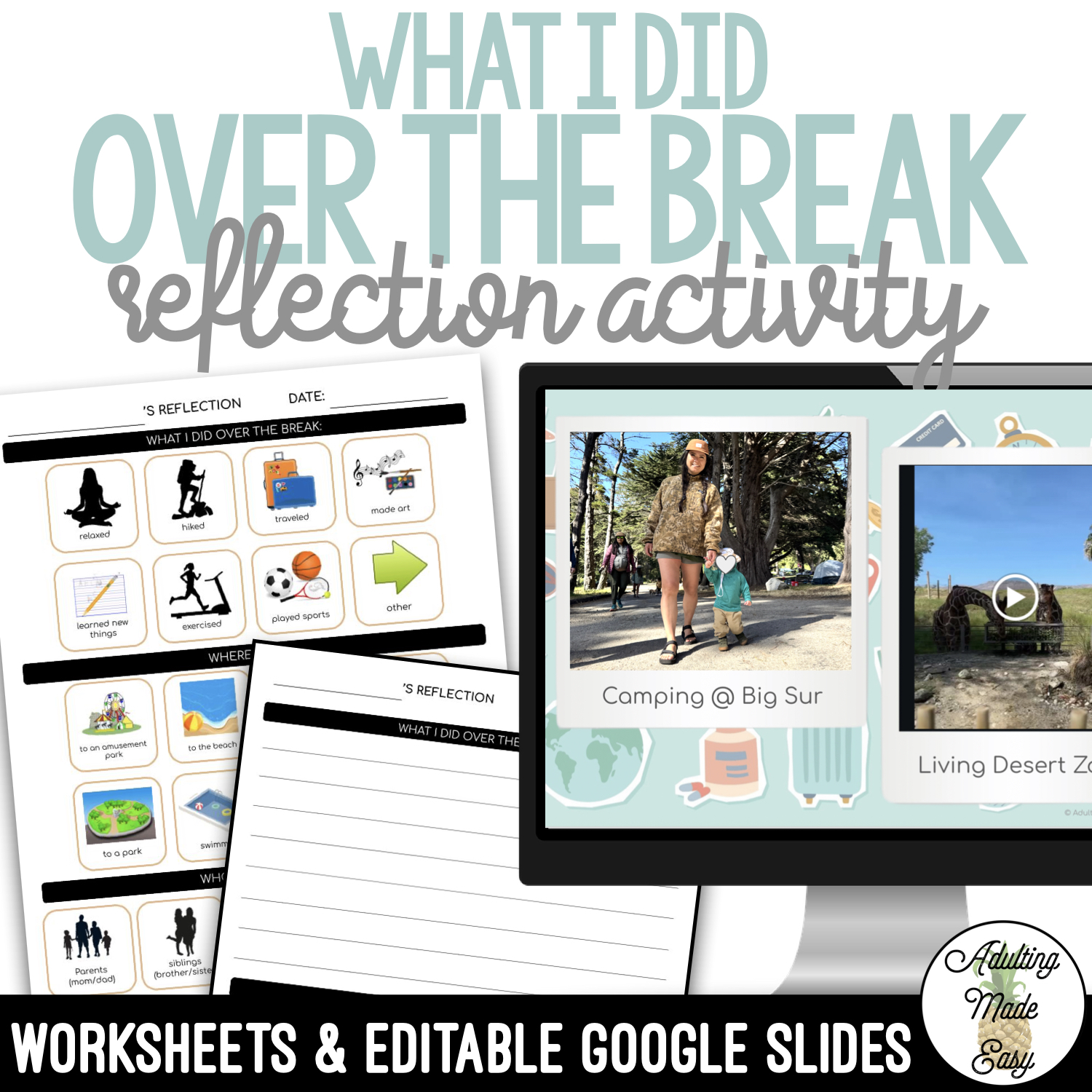 Kick off the first week of school—or return from winter or spring break—with this fun and reflective digital & printable activity! These editable slides allow staff and students to insert photos and videos, drag and drop images, or type about what they did, where they went, and more. A great way to build classroom community, support communication, and ease back into routines.