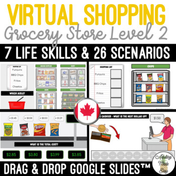 An alternative for Community Based Instruction during distance learning, and for when you return to the classroom! This activity mimics a full grocery shopping experience to help students work on several basic shopping & money consumer math skills before applying them in the community. With Canadian currency