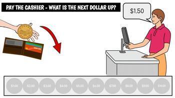 - PAY THE CASHIER – NEXT DOLLAR UP (DOLLAR OVER METHOD) Look at how much the cashier is asking for then drag and drop the correct number of Loonies. Don’t forget to use the next dollar up method to give enough cash.