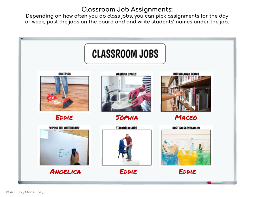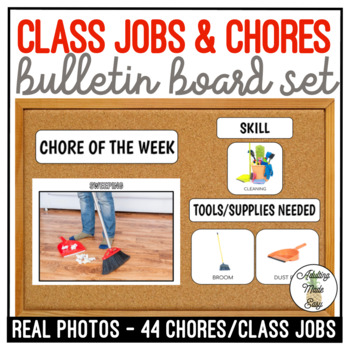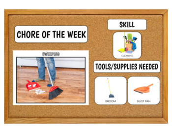 • Bulletin board/table activity – have students find the correct supplies/tools that go with each chore or class job.