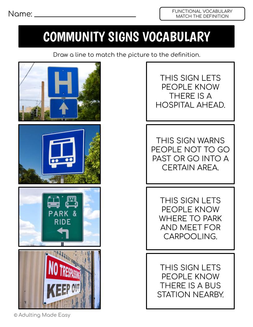 Functional vocabulary packets & lecture for life skills special education or English Language Learners to focus on everyday sight words great for daily warm up word of the day or group lessons, or for mastering IEP reading goals!