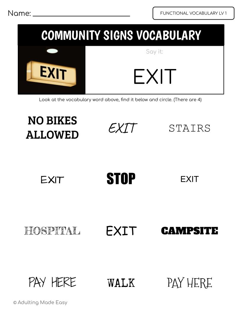 Functional vocabulary packets for life skills special education or English Language Learners to focus on everyday sight words great for daily warm up word of the day or group lessons, or for mastering IEP reading goals!