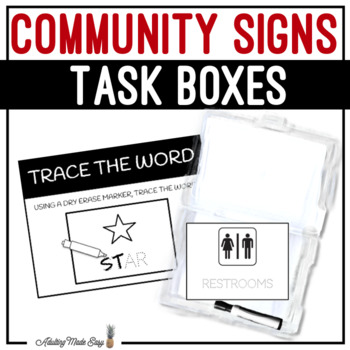 120 Functional reading task cards with community signs vocabulary. Promotes independence for life skills special education or English language learners, and a great age appropriate & engaging activity for independent work stations or centers. Community access & functional reading for special education students.