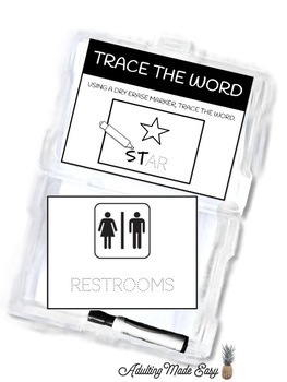 • Student will use a dry erase marker to trace the vocabulary word (with visual above it).