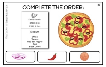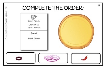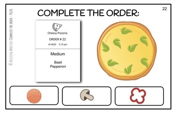 Vocational Job Skills Students can practice finding what ingredient is missing from the pizza from the order receipt. Age appropriate life skills task bin activity for secondary special education students!