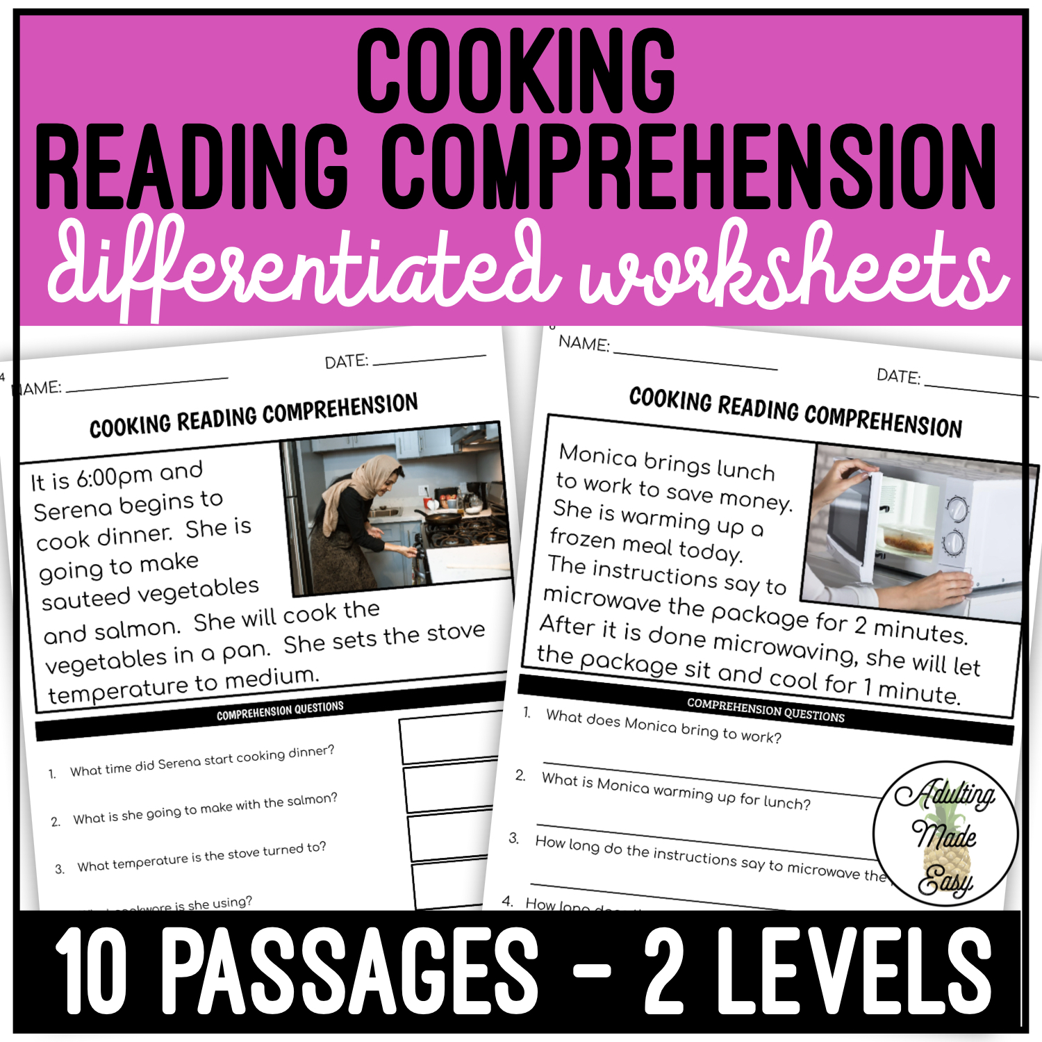 Simplified life skills themed passages consist of 4 short sentences each and real photos. Questions focus on WH questions and come in 2 levels for answering. This activity is great for special education students and English Language Learners