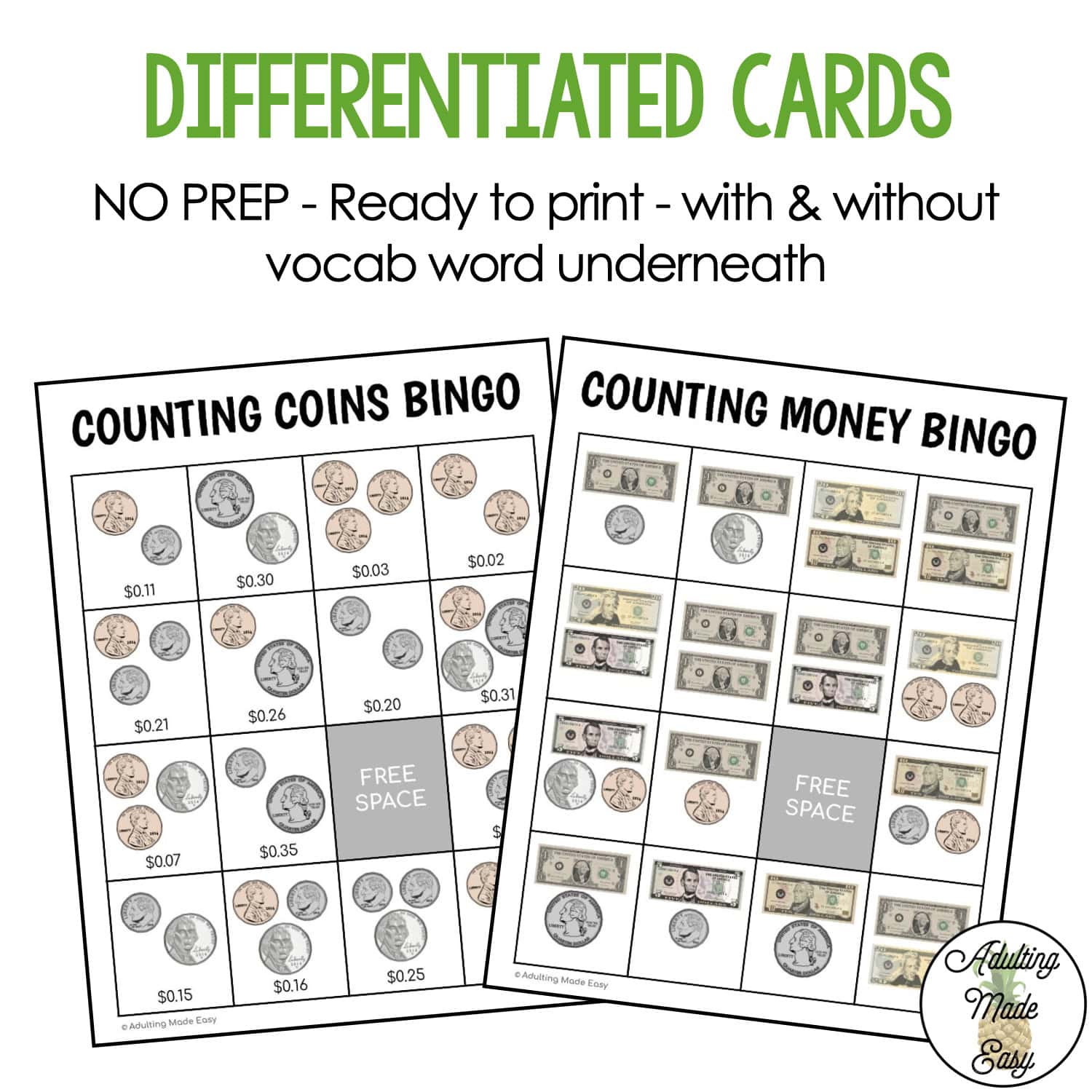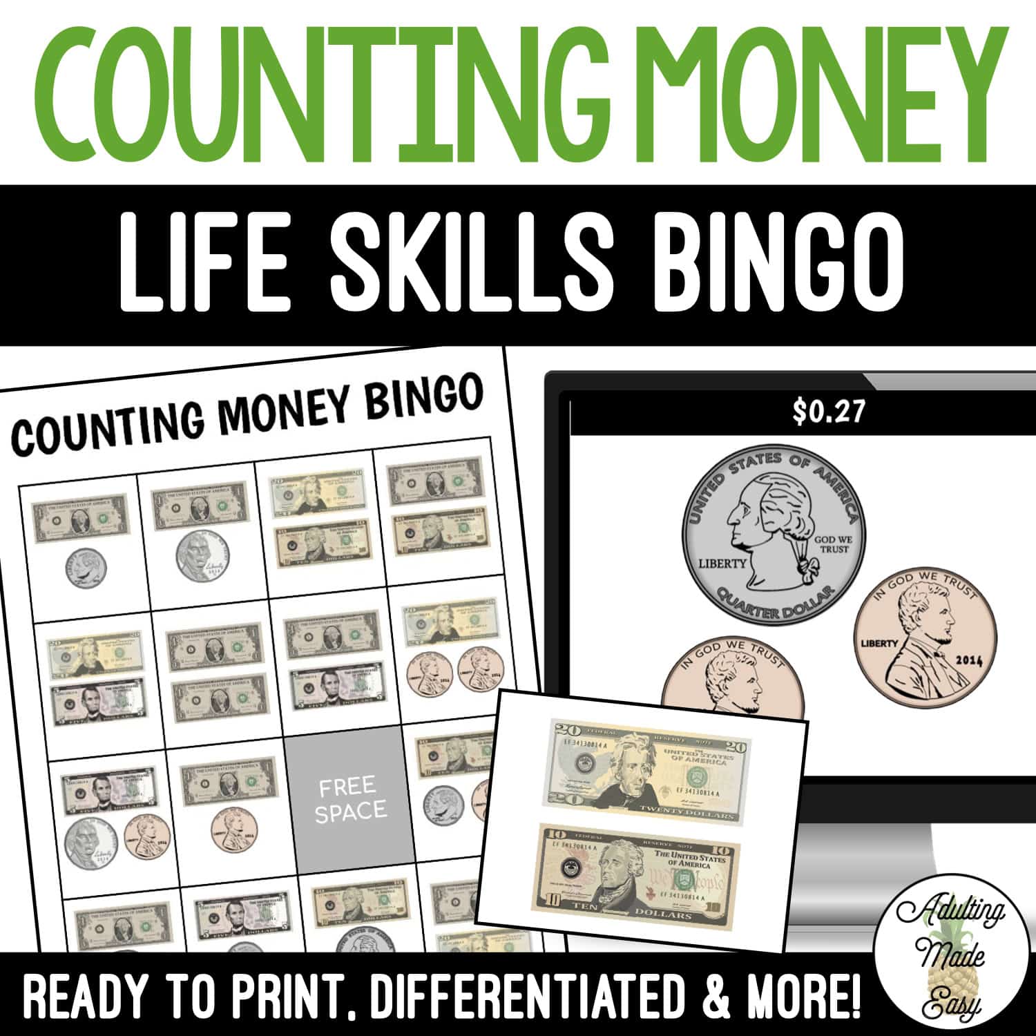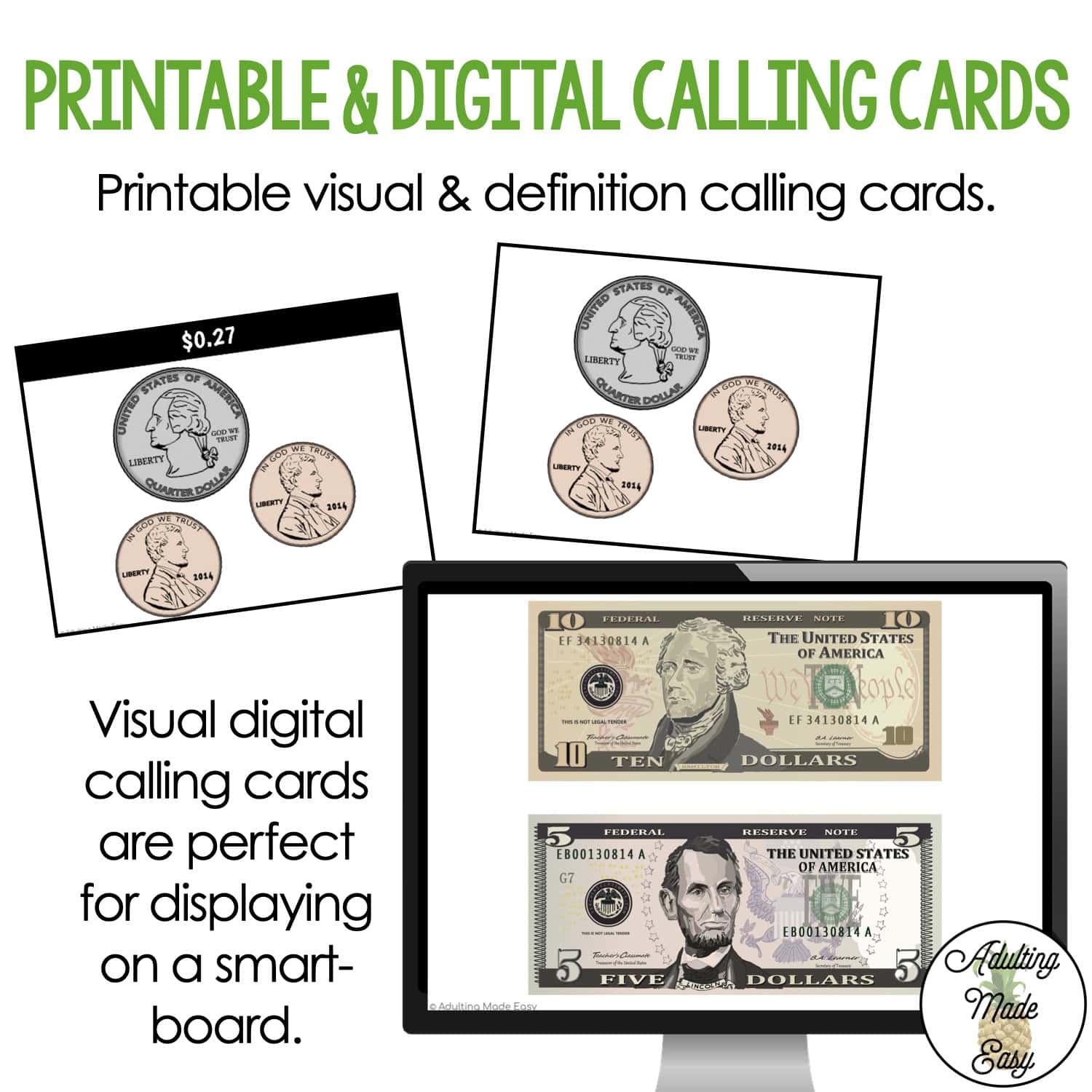 A fun and engaging way to practice functional reading and counting money United Stated currency, the perfect review activity for special education, autism or English language learner classroom. Age-appropriate visual consumer math resource for older students learning pre-vocational skills.