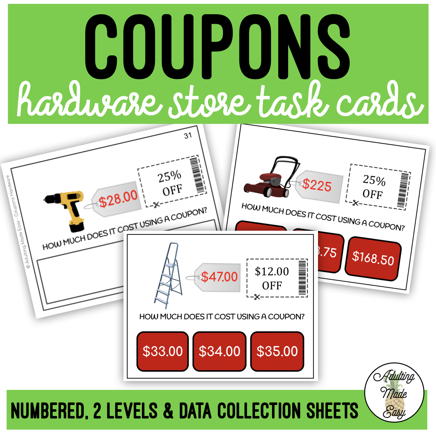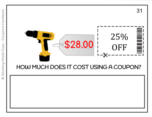 Coupons Hardware Store Task Cards