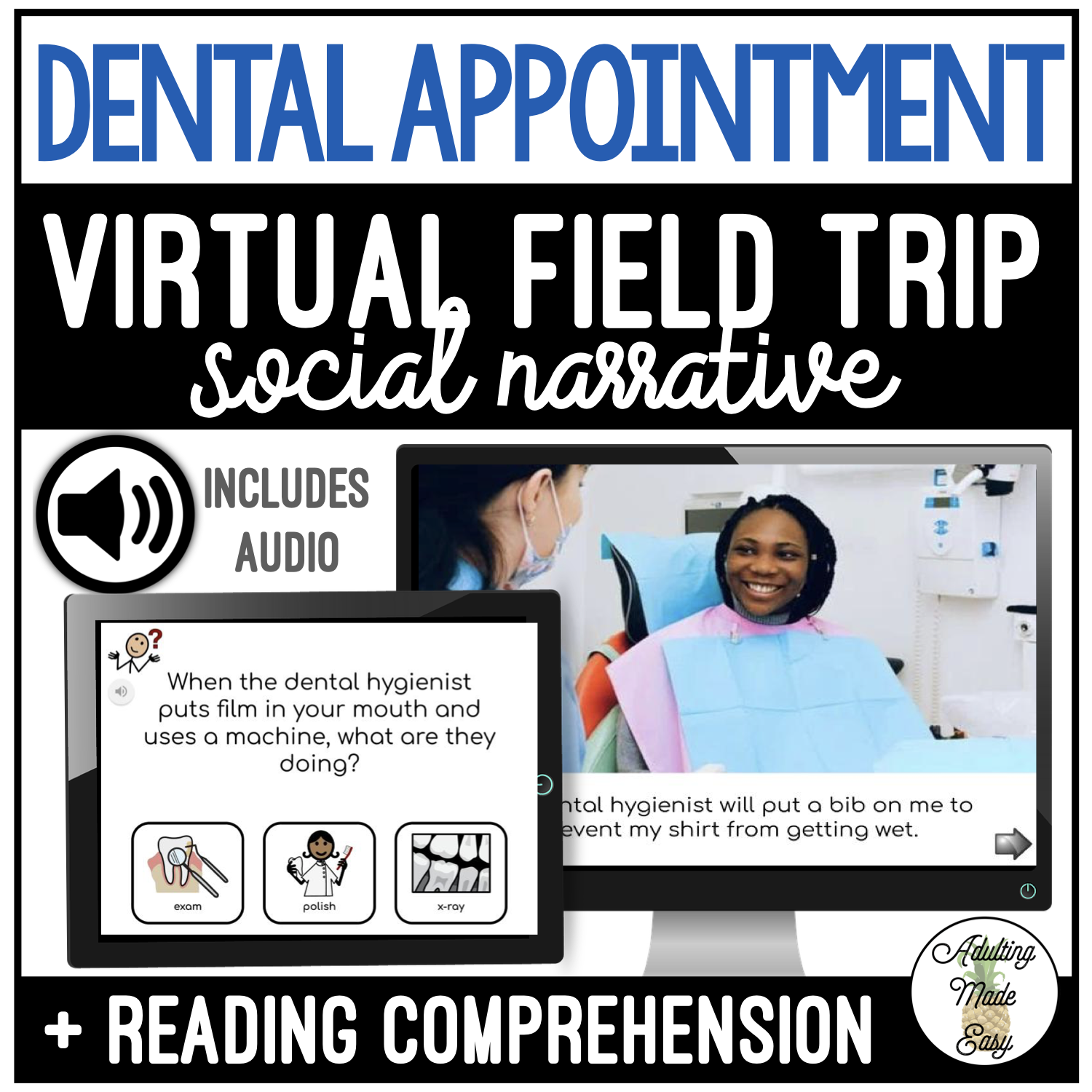 - A virtual field trip or community-based instruction narrated as a social story. Help ease the uncertainty and prepare your students with direct social skills instruction that is beneficial to students with special needs or autism. Discusses how and why to book an appointment, checking in, examination, x-ray, dentist’s tools, taking care of your teeth and more.