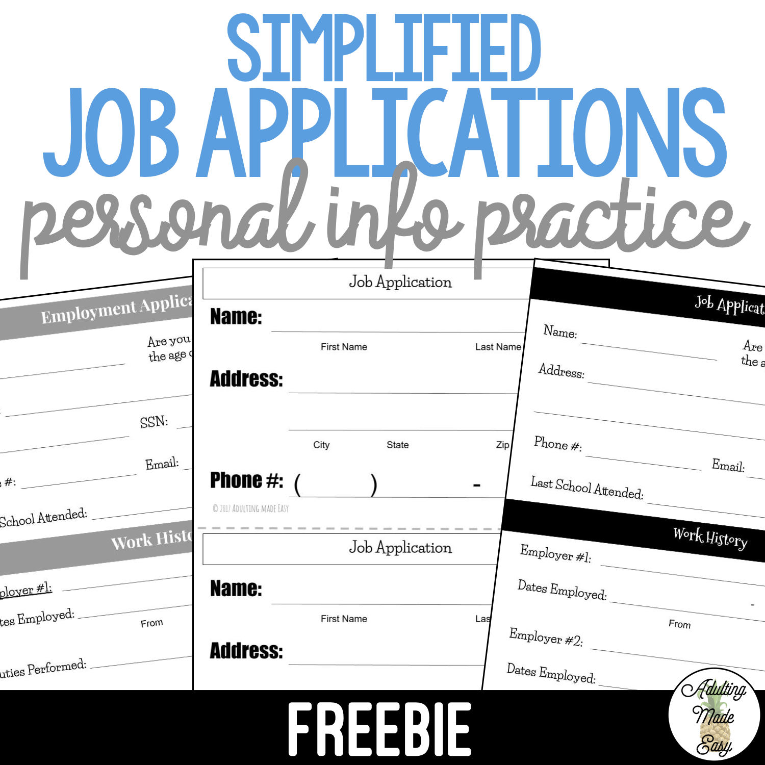 Differentiated Printable Employment Application Practice Forms: Perfect for special education students, this free resource includes 6 leveled job application templates designed to help students practice writing personal information, work history, references and more.