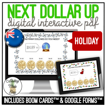 HOLIDAY VERSION Next Dollar Over AUS Currency Great for special education or students that need touching and counting with money. Images include gifts, candy cane, Christmas, Hanukah, Gingerbread, Ornaments, Hot cocoa, Snow flakes and more! NO PREP, PAPERLESS activity. Distance or remote learning