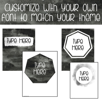 Age appropriate classroom decor & organization materials! Black, gray and white water color theme featuring high quality clipart! Classroom organization labels used for binder covers, quote posters, and much more!
