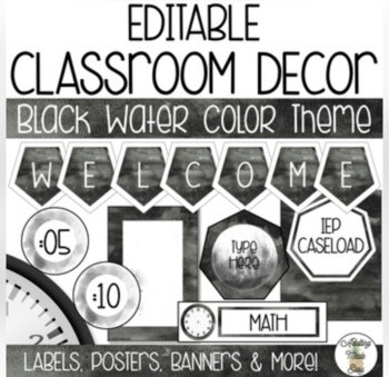 MONEY SAVING BUNDLE FOR Age appropriate classroom decor & organization materials! Black, gray and white water color theme featuring high quality clipart! A majority of the files included are EDITABLE (see below).