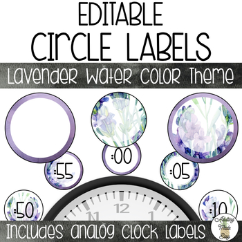 EDITABLE Circle & Clock Labels – LAVENDER Watercolor Theme