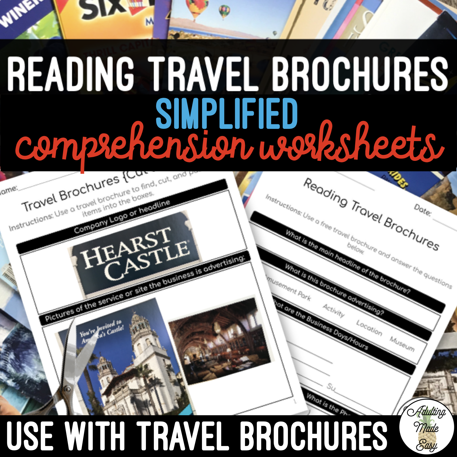 โ โ ย This activity does not come with store ads, menus, travel brochuresโฆetc, you can find grocery store ads at the front of a grocery store or in your weekly circulars, menus in your circulars or from a restaurant, and travel brochures at a hotel lobby or tourist center.