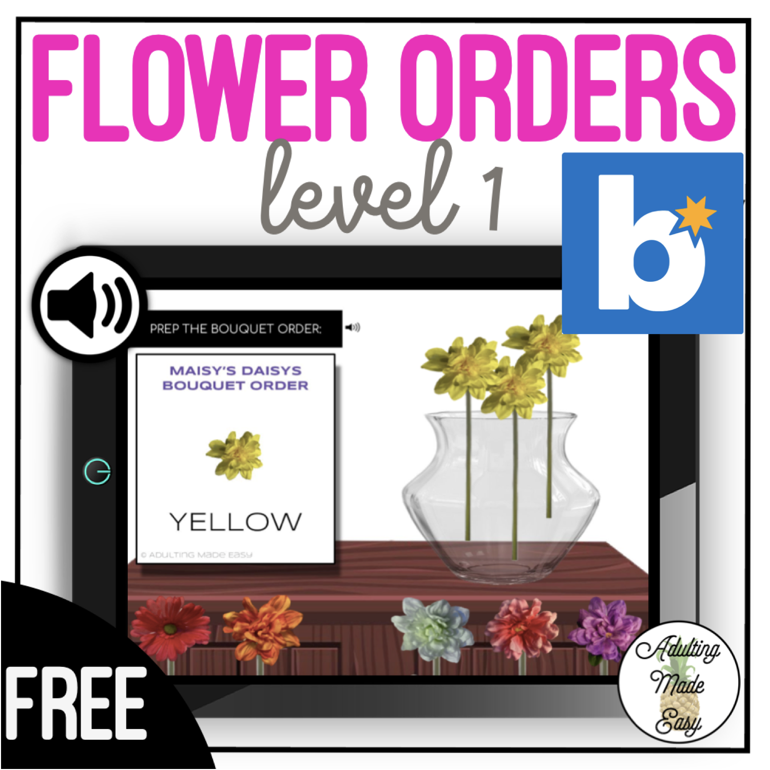 Digital task box activity – Flower shop themed activity to practice fulfilling bouquet orders!