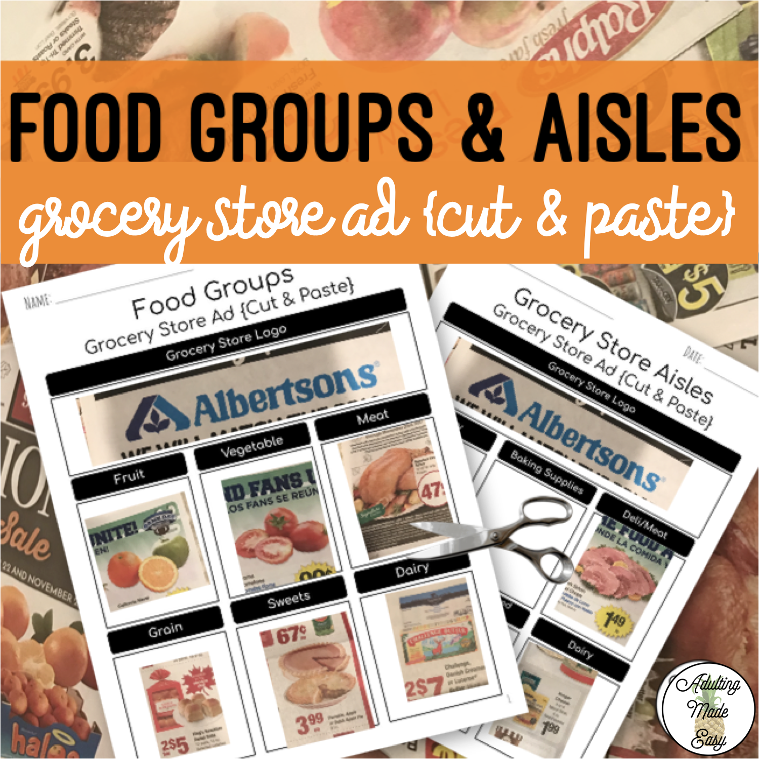 2 Cut & Paste Activities! Recycle free weekly circulars grocery store ads to Cut & Paste specified items into the boxes. Students will identify and sort various items according to the life skills categories specified below. Engaging activity for special education students!
