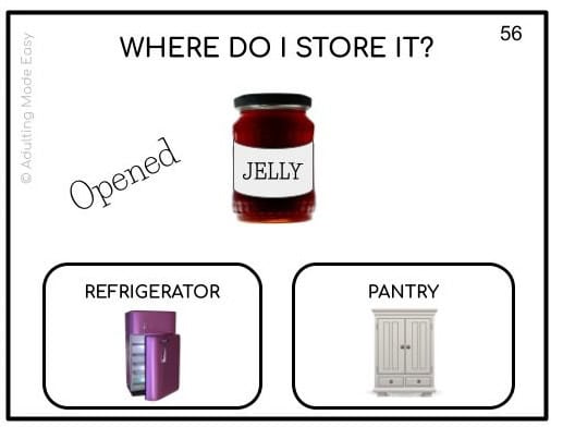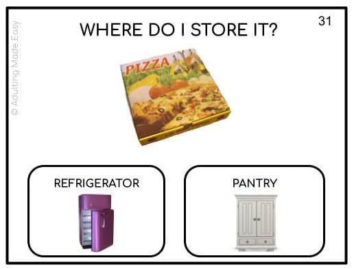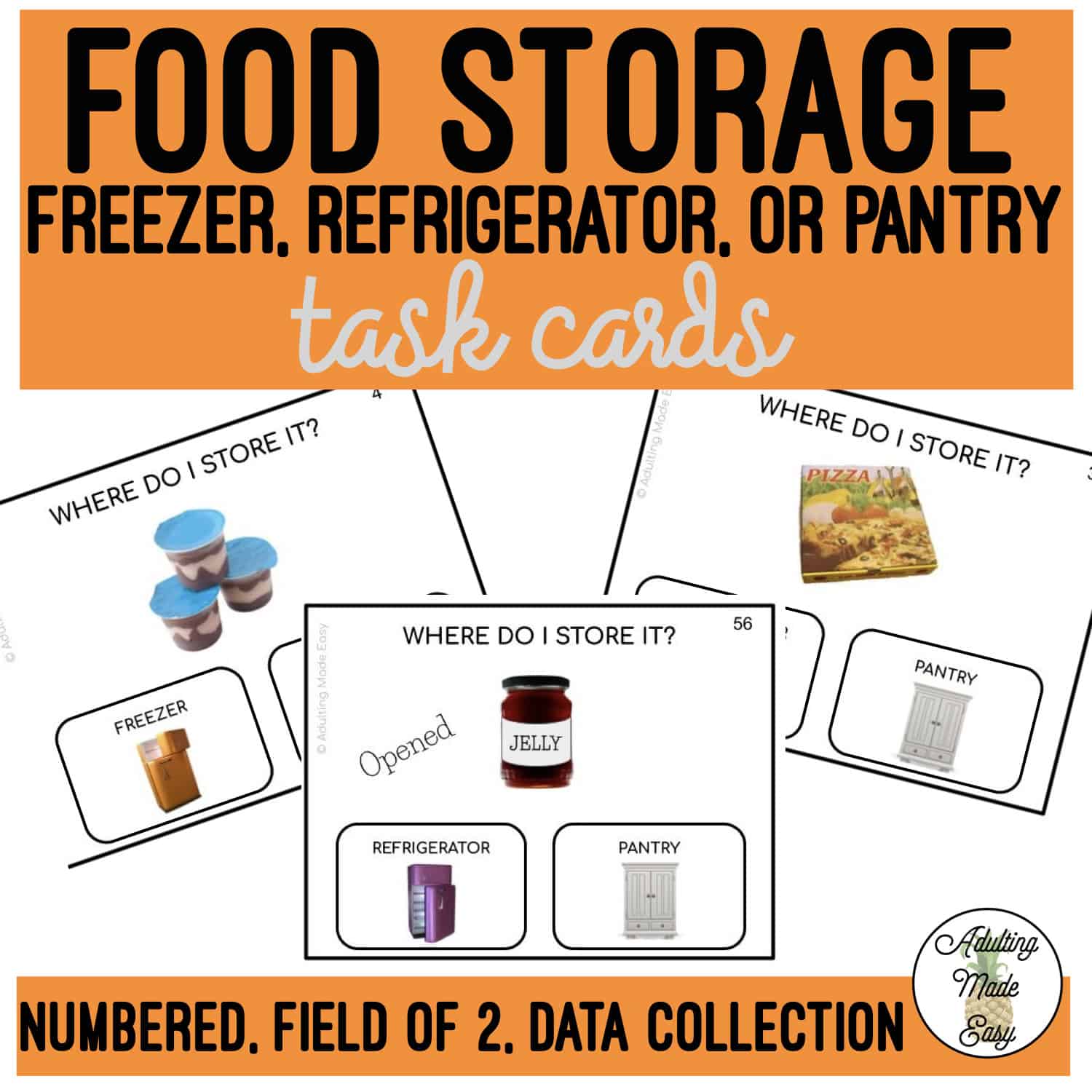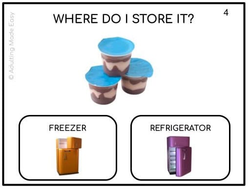 Where do I store it? Where does the food go? Where do you keep the food? – Freezer, Refrigerator, or Pantry? Great age-appropriate Life Skills activity for special education with real images!