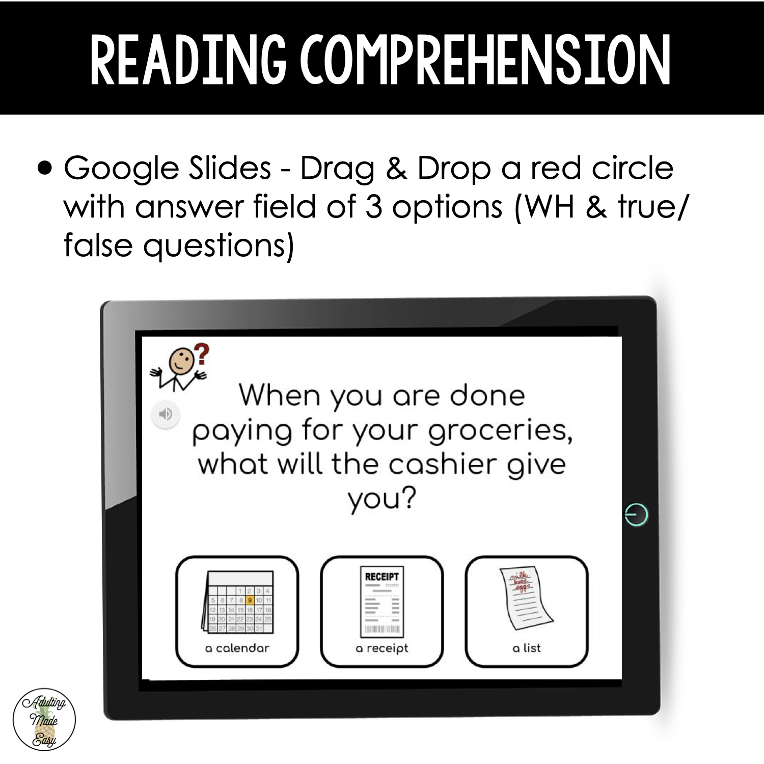 - 15 Drag & Drop comprehension questions with symbol support (WH & true/false questions)