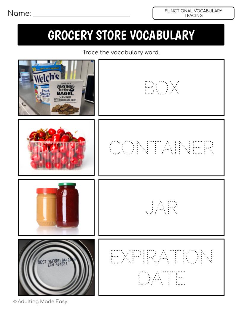 teens | adults | independent living skills | CBI | writing | community | real photos | images | age appropriate Functional vocabulary lecture for life skills special education or English Language Learners to focus on everyday sight words great for daily warm up word of the day or group lessons, or for mastering IEP reading goals!