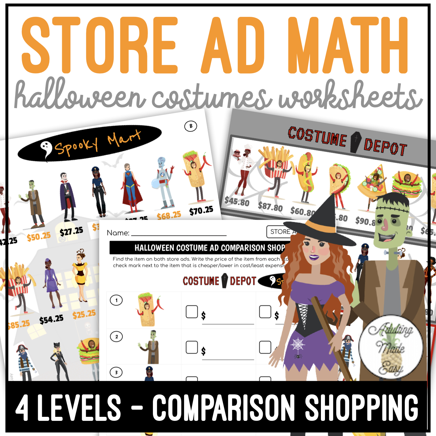 Halloween Costume Store Ad Math Comparison Shopping Worksheets