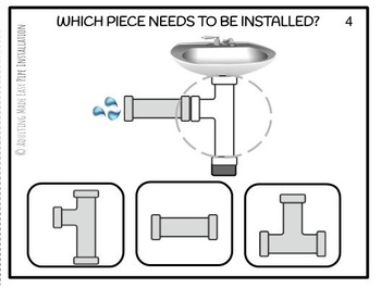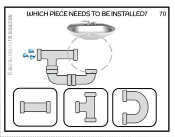 Differentiated, visual, & fun vocational activity of matching and problem solving which pipe shape fits in the space that needs to have a pipe installed. Remember the water pipes puzzle game?