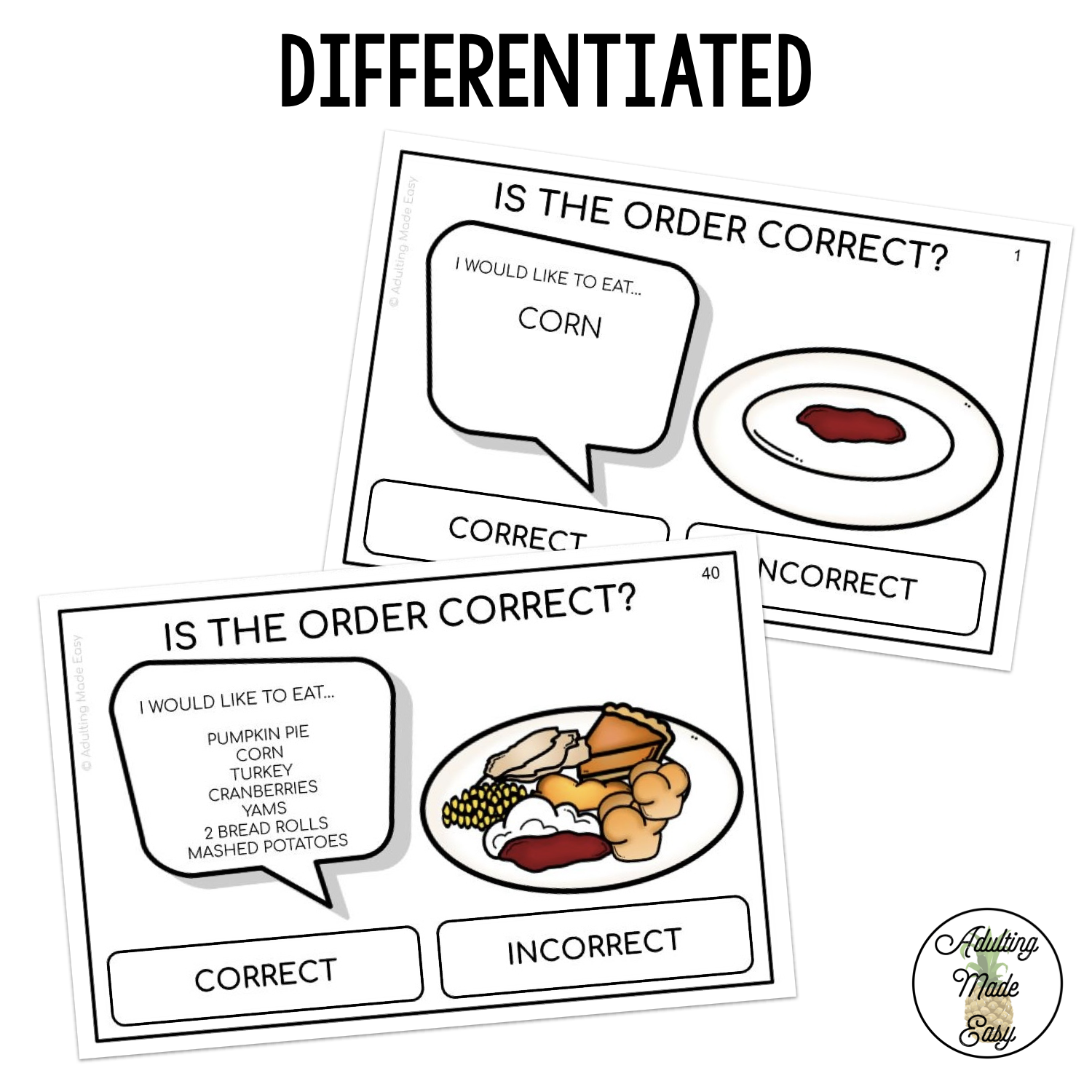 Complete The Order – Thanksgiving Dinner Large Task Cards