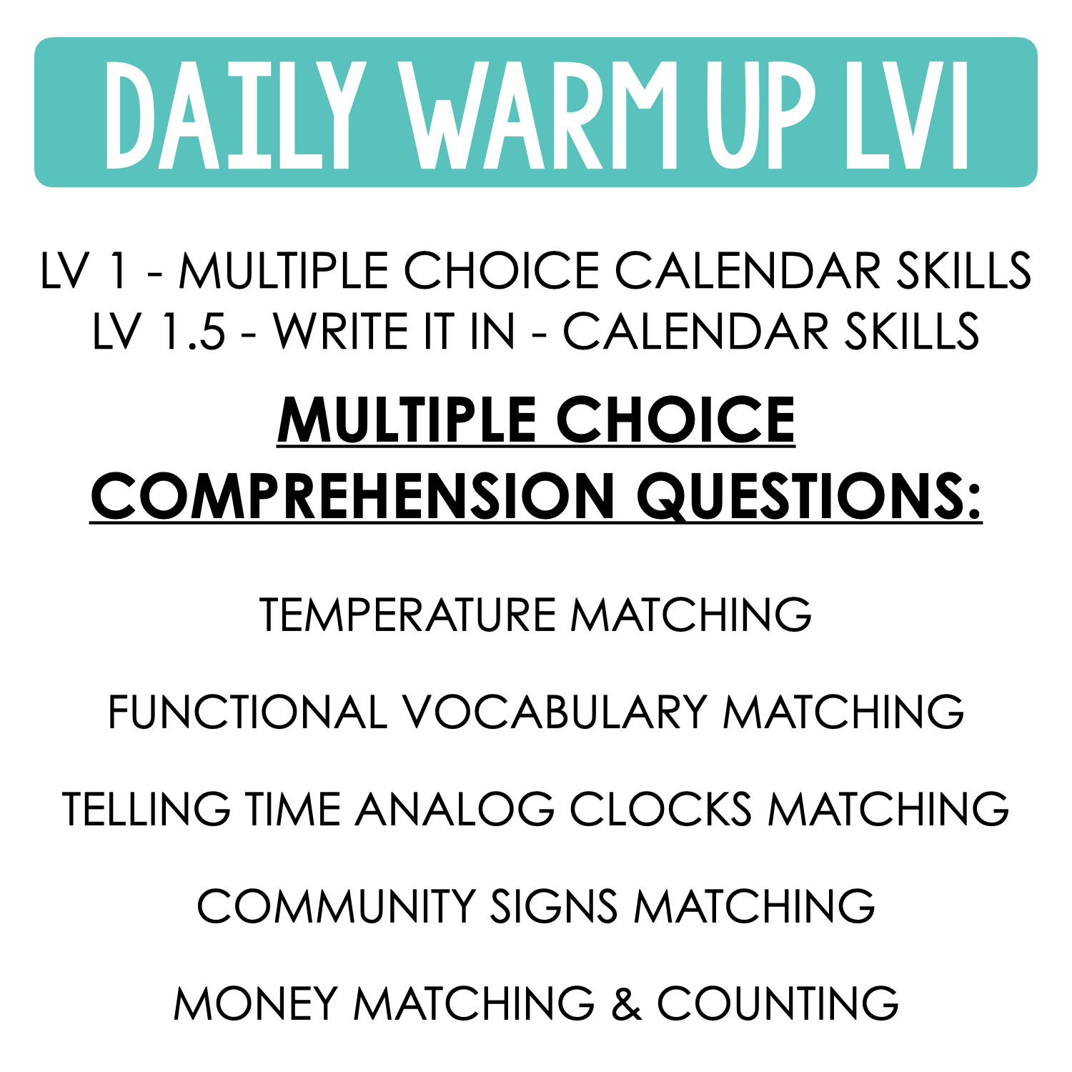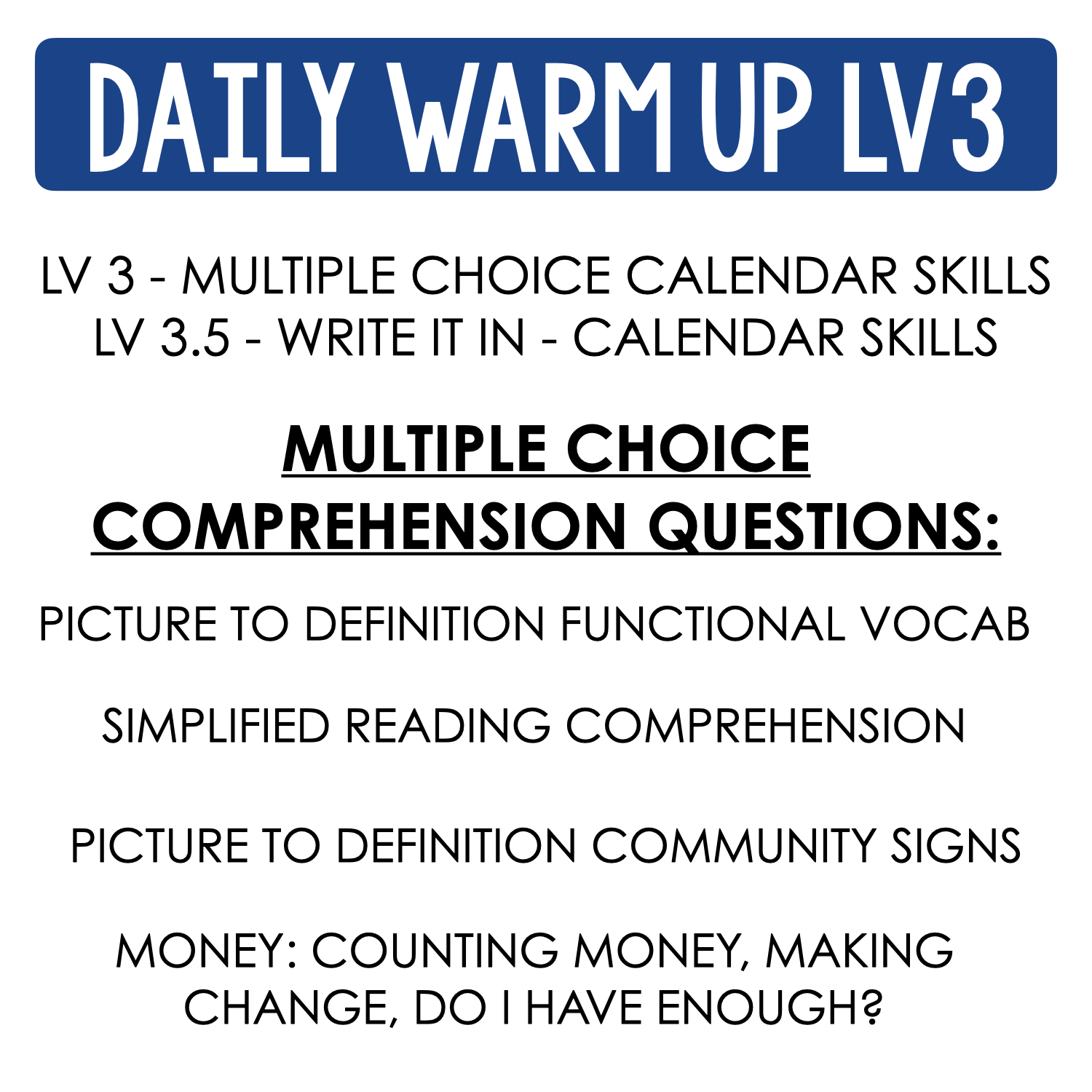 Kickstart each day with meaningful practice! This year-long bundle of differentiated daily warm-up worksheets is designed specifically for life skills and special education students. Perfect for morning work, bell ringers, or independent practice, these engaging worksheets reinforce essential functional skills with consistency and routine.