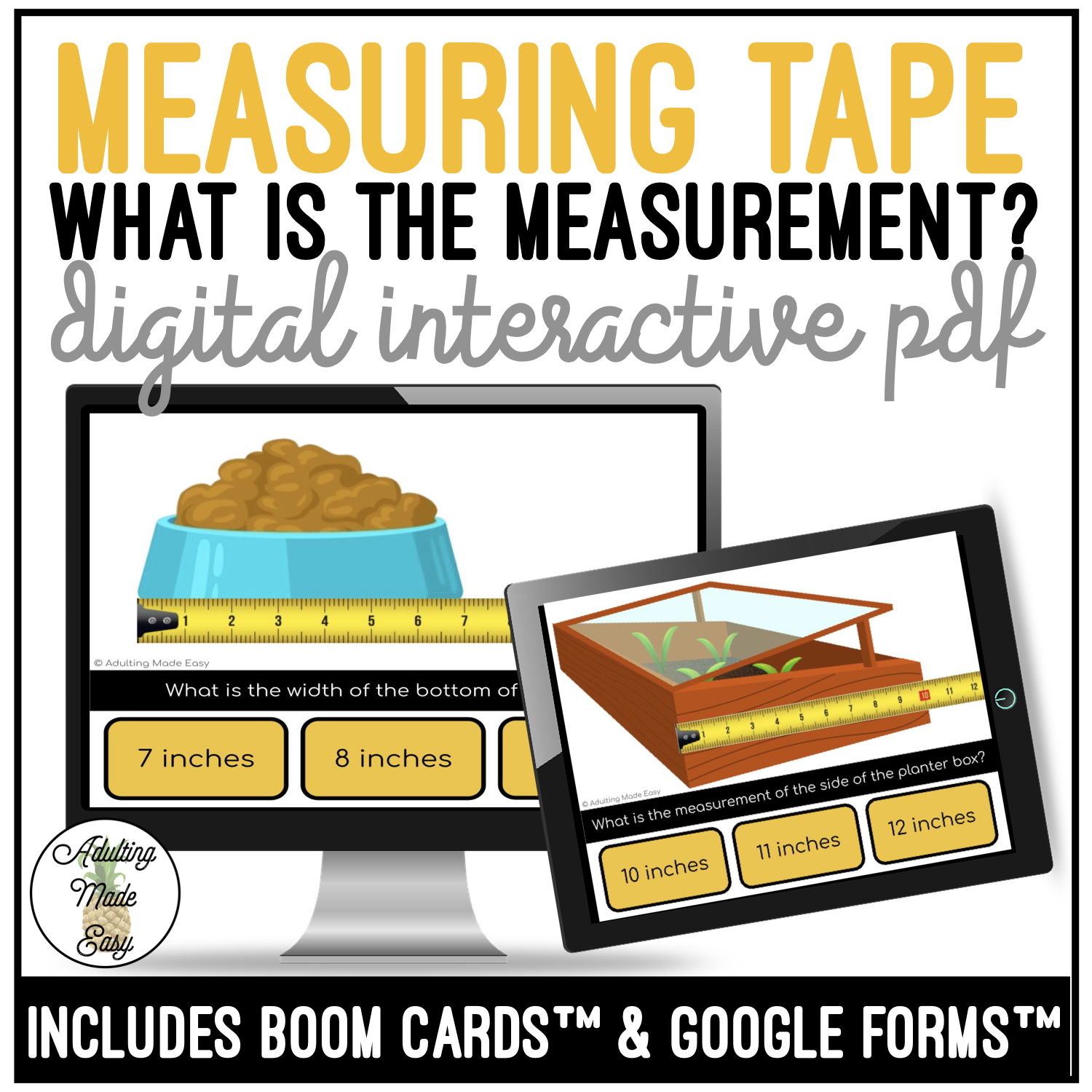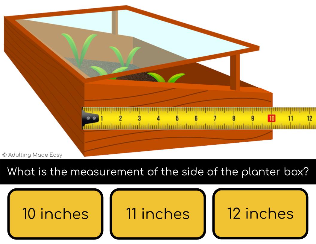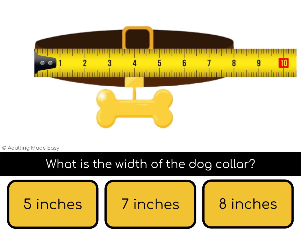 Students will practice an essential life skill of measuring common items. Measurements are for widths and lengths in whole number inches under 20 inches. Great activity for special education NO PREP, PAPERLESS, differentiated digital interactive activities with a field of 3 answer choices