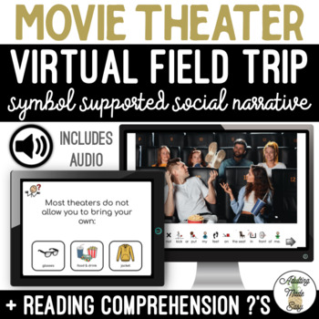 A virtual field trip or community-based instruction narrated as a social story. Help ease the uncertainty and prepare your students with direct social skills instruction that is beneficial to students with special needs or autism. Discusses different ways to check showings and buy tickets, arriving early to find a seat or finding an assigned seat, etiquette – turning phone off and talking during movie, concessions stand, and more!