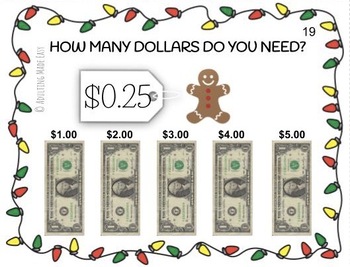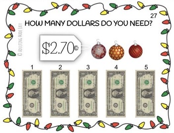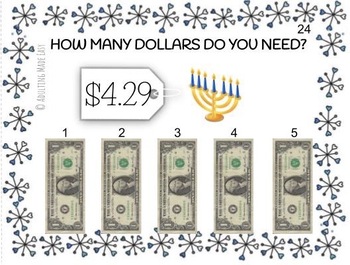 HOLIDAY & CHRISTMAS VERSION Next Dollar Over Holiday edition Task Cards. Great for special education or students that need touching and counting with money. Includes gifts, candy cane, Christmas, Hanukkah, Gingerbread, Ornaments, Hot cocoa, Snow flakes and more!