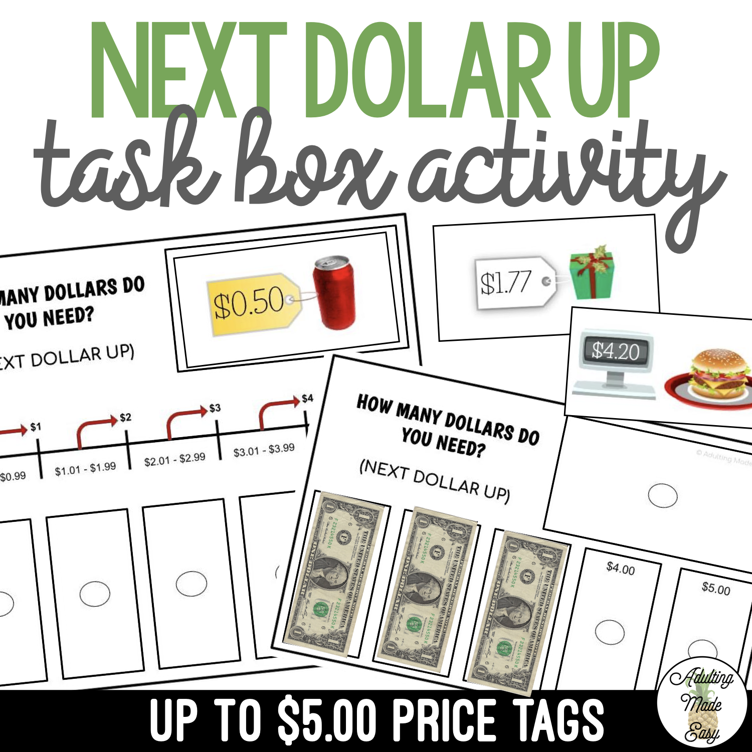 Next Dollar Up ($5-$10) – How Many Dollars Do I Need Task Box Activity