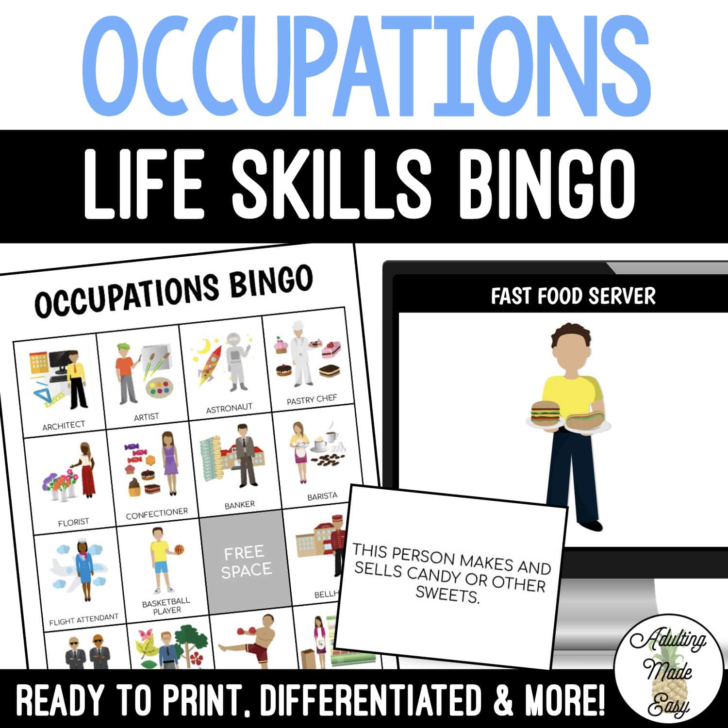 A fun and engaging way to practice functional reading of common life skills career job skills vocabulary, the perfect review activity for a special education classroom.