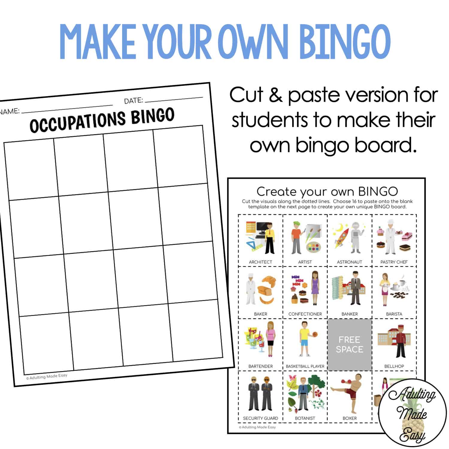 - Make Your Own (cut & paste) bingo template & visuals