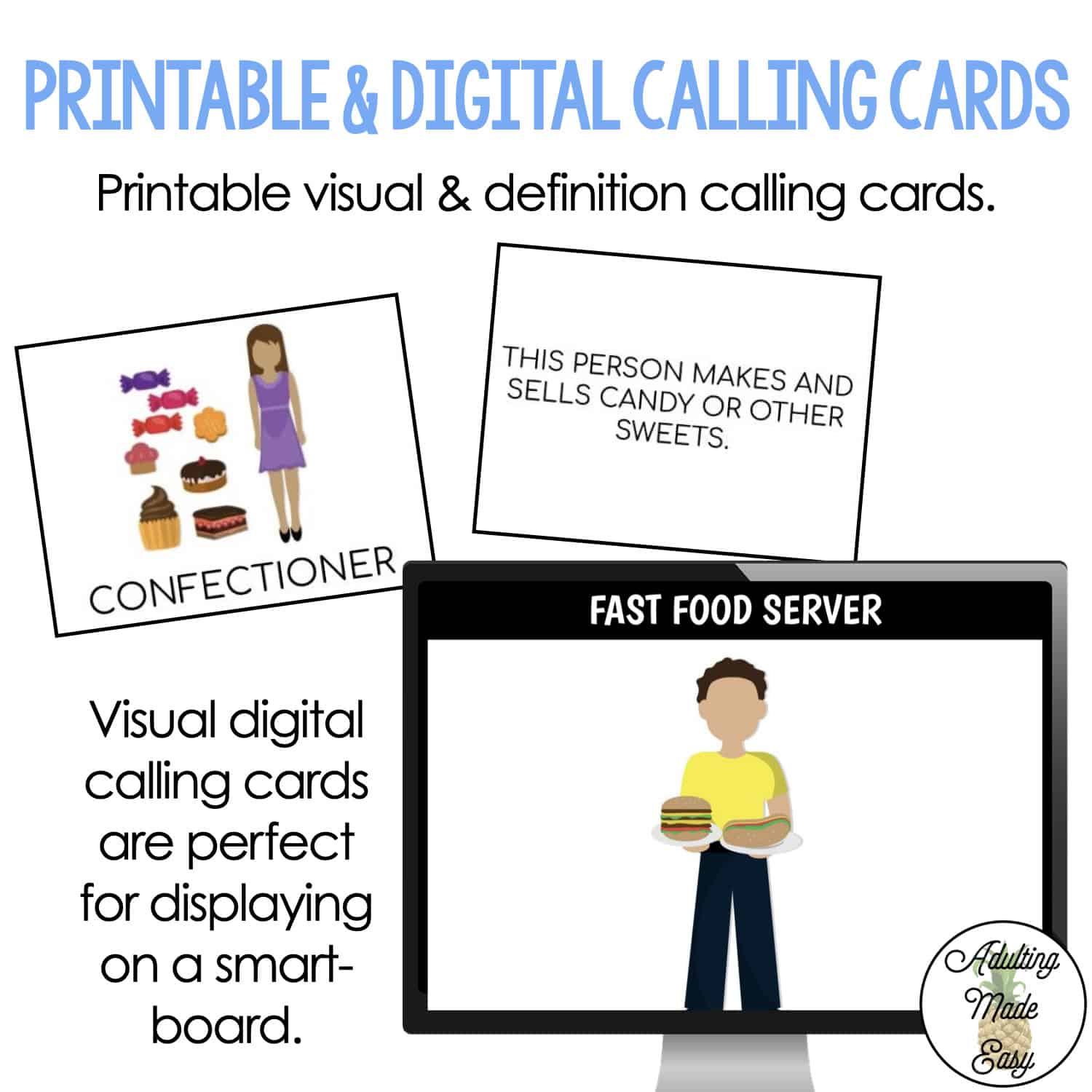- Large visual calling/answer cards (great for students that need to match)