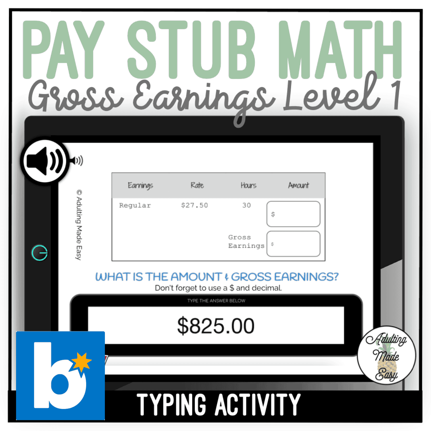 Pay Stub Math Calculating Gross Earnings Level 1 Typing Boom Cards