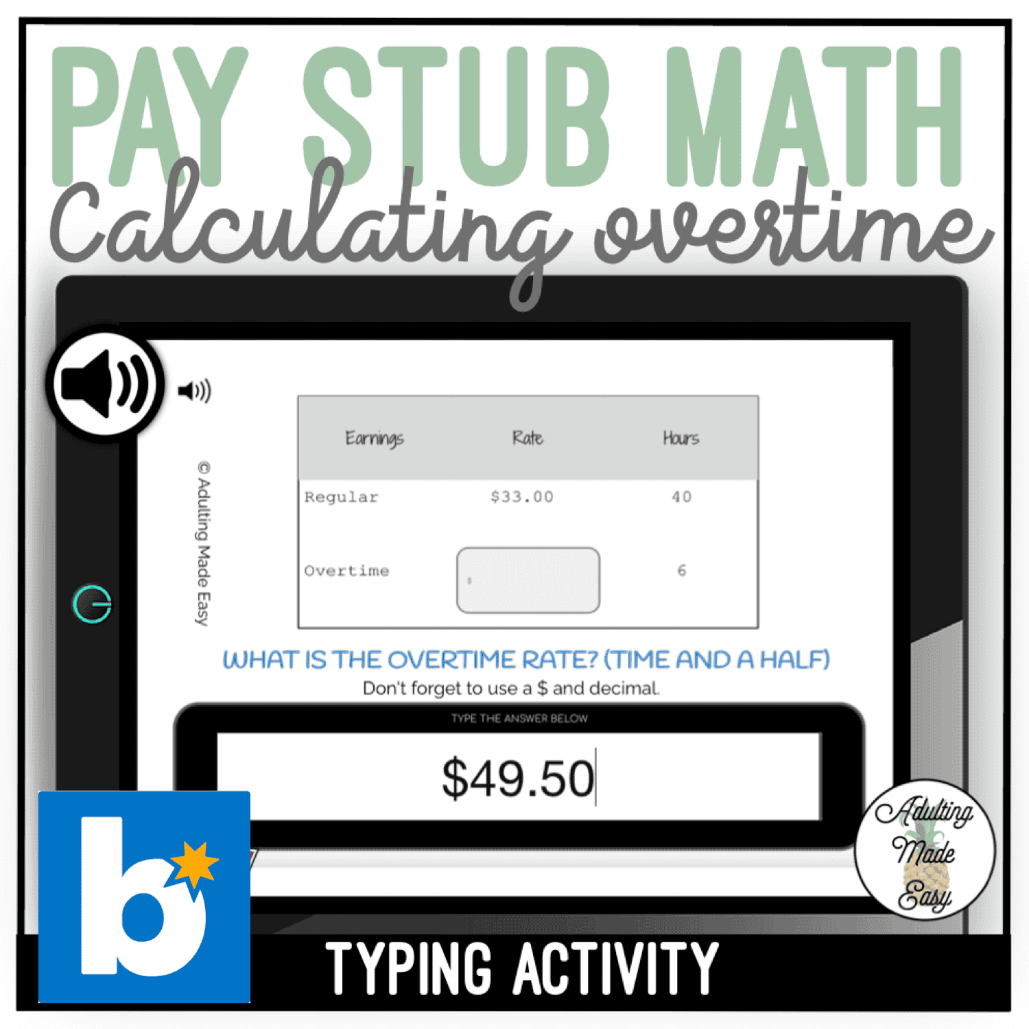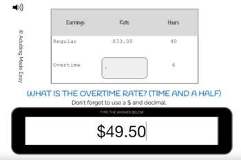 Pay Stub Math Calculating Overtime Rate Typing Boom Cards
