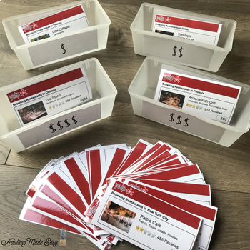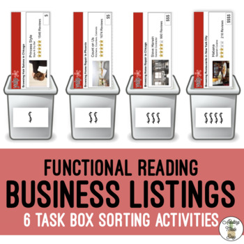 Functional Reading Sorting Activity – Reading business Review Listings. Great activity for older students learning to read and use review listing websites to comparison shop or find a business that fits their needs.