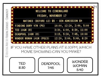 • 24 Movie Theater schedule task cards