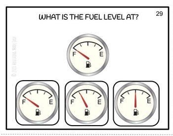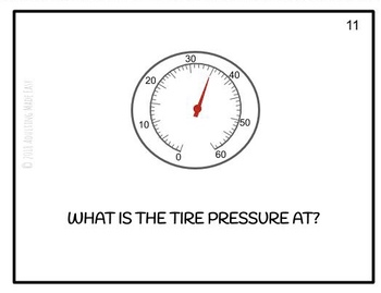 Functional Reading Task Cards with Fuel Gauges, Tire Pressure Gauge, and Speedometer. Age-appropriate life skills task bin activity for secondary special education students!