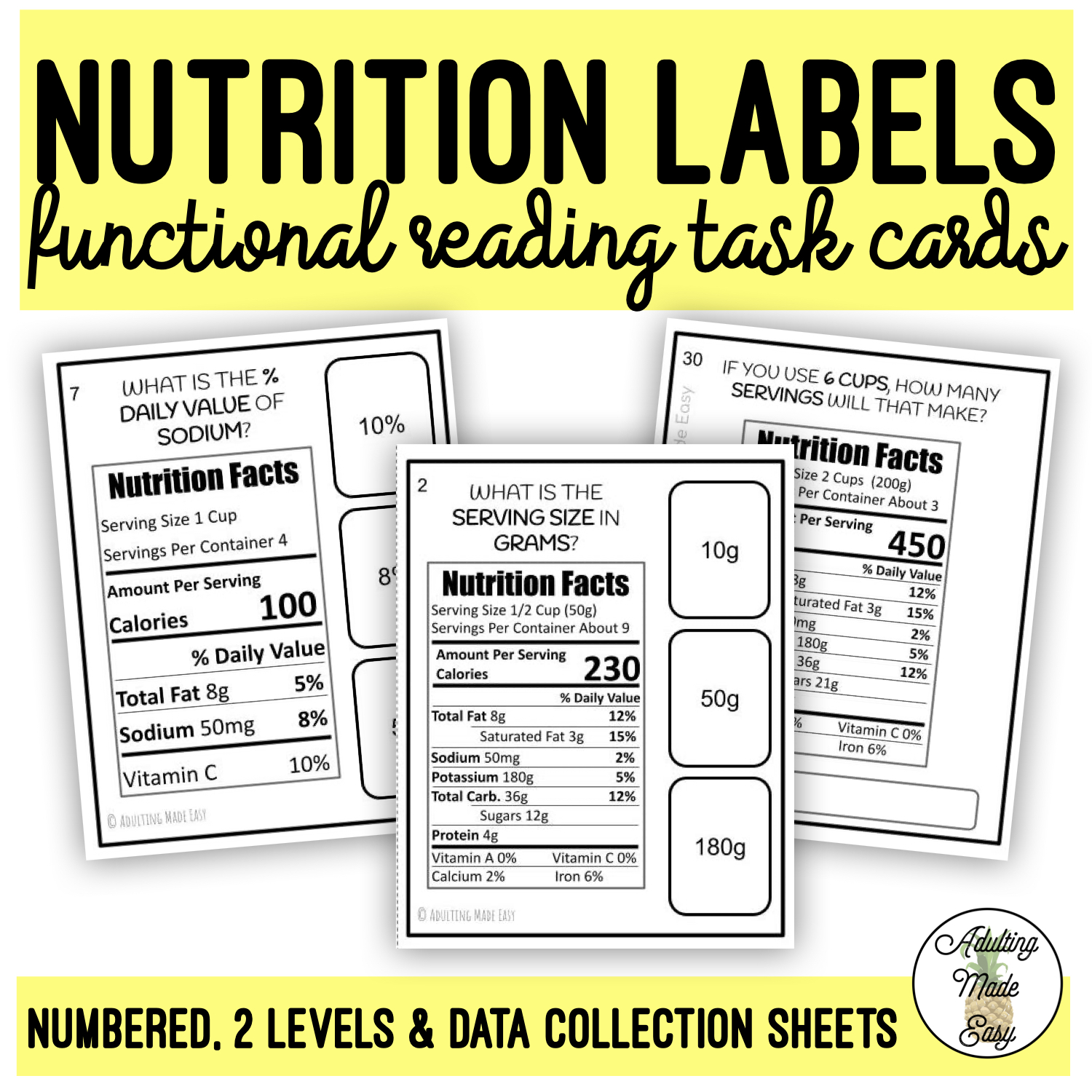 Reading Nutrition Labels Digital Activity