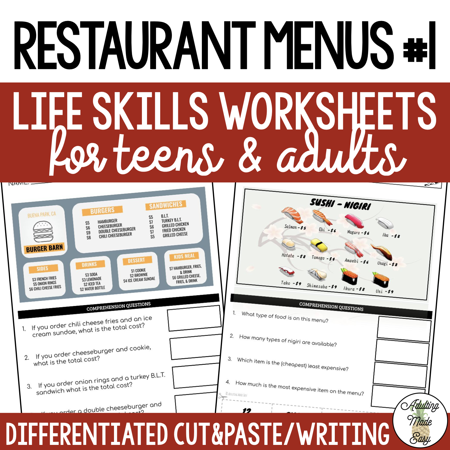 - 24 Level 1 Cut & Paste Worksheets (4 questions per page)